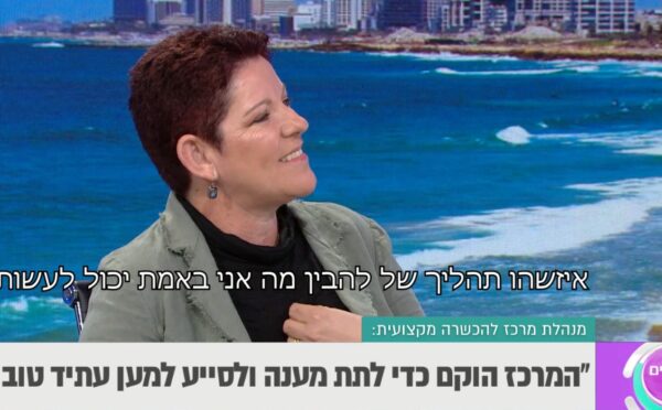 מהתקשורת מדברים עלינו בתקשורת גלית נעים בתכנית 'זמן וולנס' עם אברי גלעדלצפיה גלית נעים מנהלת מרכז מרופין לקריירה - ראיון ערוץ 13לצפיה מרופין לקריירה - לאנשים שצריכים יותר תמיכה בתקופת הלימודים. גלית נעים בתכנית הבוקר 'פותחים יום' ערוץ 13לצפיה 'מרכז מרופין לקריירה' בתכנית פאולה וליאון ערוץ 12לצפיה 'מרכז מרופין לקריירה' בתכנית הבוקר "פותחים יום" בערוץ 13לצפיה תכנית הלימודים מתארחת אצל אורלי וגיאלצפיה גלית נעים מנהלת מקצועית מתארחת ב"חיים טוב" ערוץ 2לצפיה בוגרת התכנית רותם סידס בתכנית מעברים בערוץ 1לצפיה קצת עלינו ארבעה סטודנטים שעשו את השינוילצפיה מרופין לקריירה - הכשרה מקצועית לצעירים עם הפרעת קשב ולקויות למידהלצפיה סליחה על השאלה- בוגרי מרופין לקריירה מספריםלצפיה איך זה עובד – סטודנטים ואנשי צוות מסבירים על תכנית מרופין לקריירהלצפיה "לא האמנתי שאני מסוגל/ת והנה אני כאן"לצפיה מתוך העיתונות המאבק של מור לעתיד טוב יותר - והתוכנית ששינתה את חייהלקריאה מעריב- הקשר בין הפרעת קשב לבין קשיי תעסוקהלקריאה "השמיים לא הגבול" גם לקויי למידה יכוליםלקריאה ליווי לקויי למידה עד קבלת העבודהלקריאה חמש שנים לתכנית "מרופין לקריירה"לקריאה מסלול הכשרה ייחודי ללקויי למידהלקריאה זמן חדרה - גם אני יכולהלקריאה ידיעות השרון וחדרה - שיעור בהצלחהלקריאה מגזין העמק - כל הדלתות פתוחותלקריאה מגזין העמק - מרופין לקריירהלקריאה ידיעות הקיבוץ - בעלי מקצוע מיוחדיםלקריאה שבשבת - בוגרים למרות ליקויי למידהלקריאה שבשבת - מהו האופק התעסוקתי שלך?לקריאה מקומון פתח תקווה - נער בהפרעהלקריאה מאבדים את בעלי הלקות השקופהלקריאה בתוכנו עיתון גבעת חיים איחודלקריאה מעריב- יום מודעות השמיעה הארצילקריאה משלימים זה את זהלקריאה